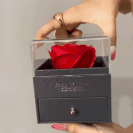 Compré esta rosa para mi esposa y quedó encantada. La caja es perfecta para resaltar la rosa, y lo mejor es que no se marchita. Excelente calidad.